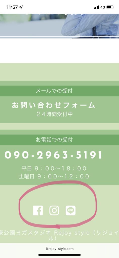 公式LINE・スタジオインスタグラム・フェイスブックはわかりづらいのですがホームページ下部の